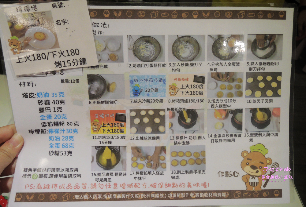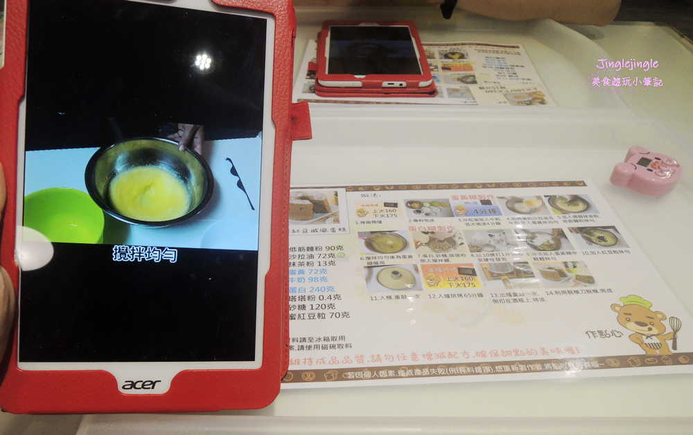要拿的食材和文字的步驟會在這張紙上,平板裡面也有動態的流程,不用怕會做錯